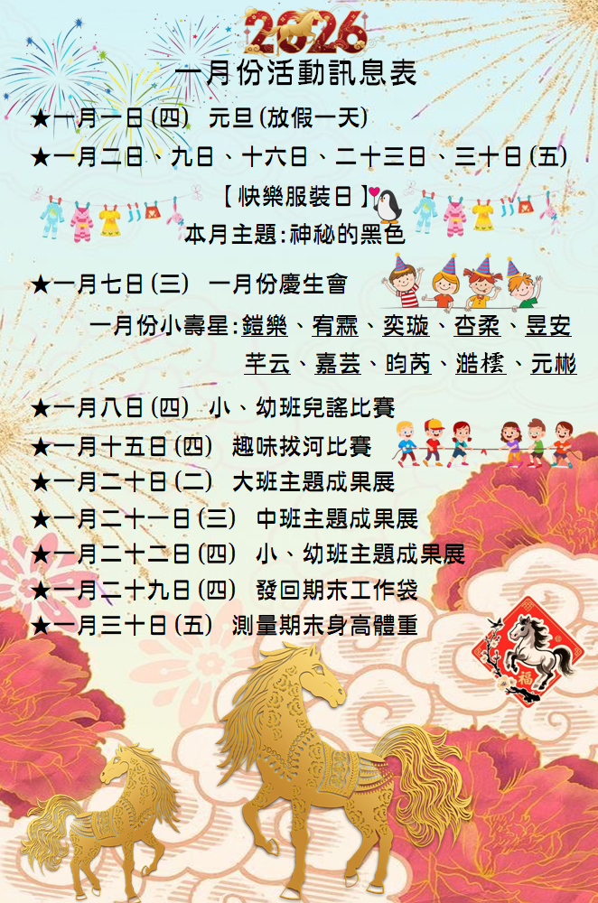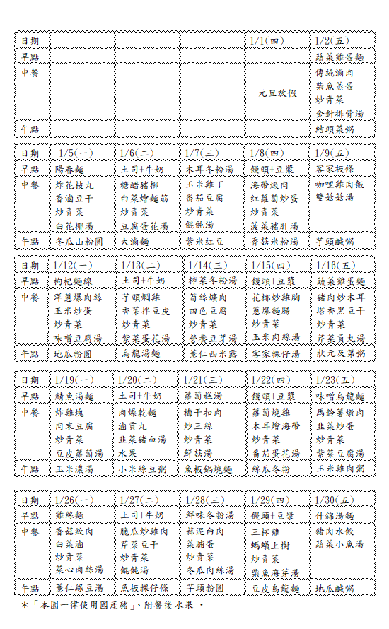 115年 一月份活動訊息及餐點表