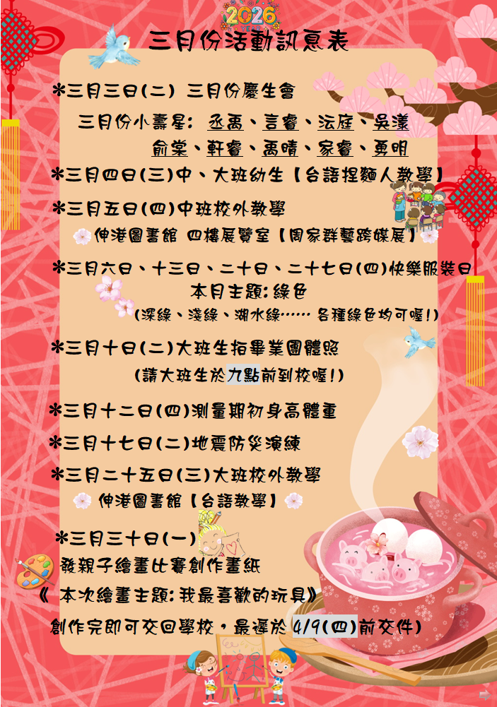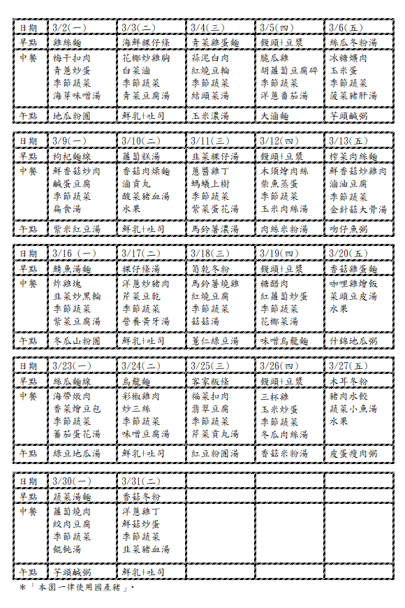 115年 三月份活動訊息及餐點表